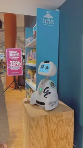 Buddy, robot d’accueil en magasin, a pris place à l’entrée pour accueillir, surprendre et dialoguer avec des milliers de visiteurs.